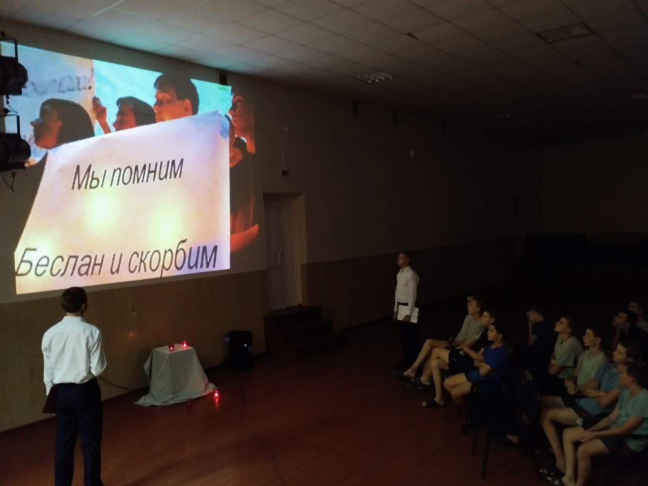 В ходе мероприятия учащиеся познакомились с хронологией трагических событий в Беслане, просмотрели презентацию "Беслан - наша боль". В завершении мероприятия минутой молчания почтили всех, кто погиб в этой страшной трагедии, жертвуя своими жизнями, чтобы спасти других.
