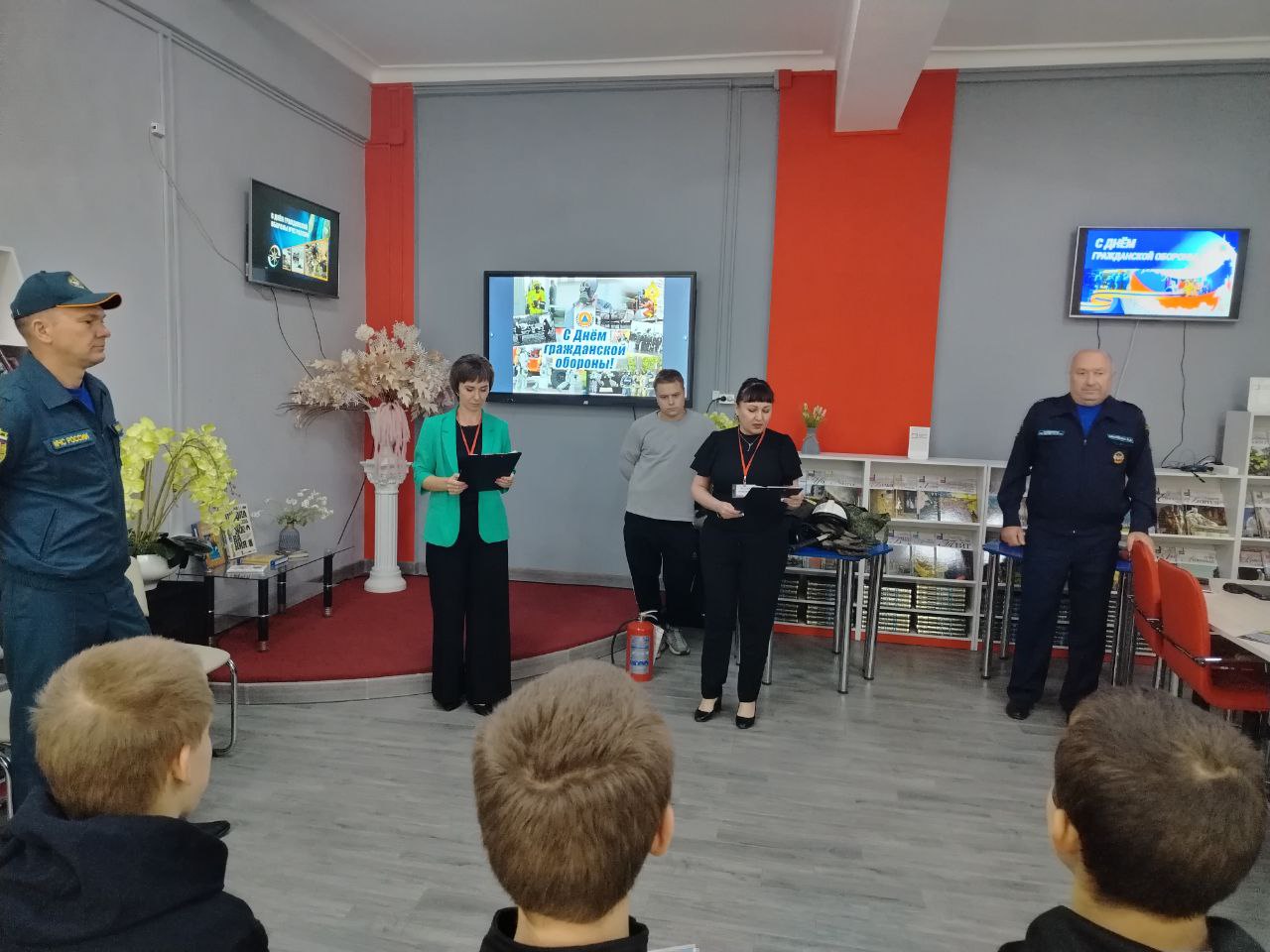 9 октября воспитанники спецшколы посетили районную библиотеку в п. Чертково. Экскурсия оставила в душе ребят хорошие впечатления. Сотрудники библиотеки, Елена Николаевна и Наталья Николаевна, подготовили для ребят интересную встречу, посвящённую Дню гражданской обороны. Подростки с увлечением слушали информацию об этой памятный дате и работе сотрудников МЧС. Но особенно запомнится ребятам встреча с сотрудниками МЧС и ГО Чертковского района. Они рассказали о своей профессии, показали ребятам обмундирование, в котором они выполняют свою сложную и ответственную работу. Воспитанники с удовольствием примеряли обмундирование. Хочется выразить слова благодарности сотрудникам библиотеки за такую встречу. А сотрудников МЧС и ГО поздравить с их профессиональным праздником и пожелать удачи в их нелёгком труде!