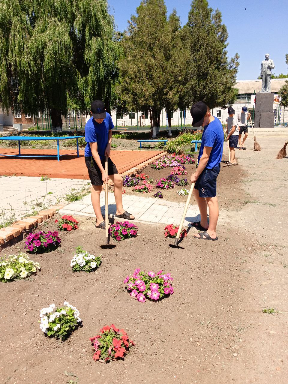 Наши мальчишки любят трудиться. Сегодня они, в очередной раз, вышли на уборку пришкольной территории, вооружившись необходимым инвентарем. Ребята почистили участки вокруг клумб, собрали мусор и за несколько часов школьная территория преобразилась: везде чисто и красиво. Давайте вместе делать мир лучше!