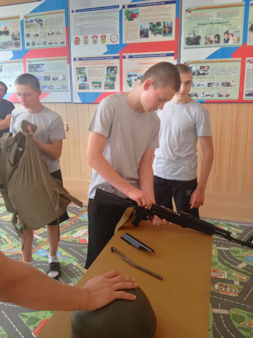 В целях патриотического воспитания обучающиеся "Ростовской областной спецшколы" совершили увлекательную экскурсию в Чертковскую автошколу. Преподаватели автошколы провели с подростками мастер-класс по разборке и сборке автомата. На мастер-классе ребята узнали историю создания автомата, принцип его работы, а также порядок сборки и разборки. Кроме того, мальчишкам показали предметы военного быта и снаряжения. Прослушав требования по технике безопасности, ребятам было предложено проверить свои практические знания. Воспитанники по очереди приступили к сборке-разборке автомата и проверили свою скорость обращения с оружием. Этот увлекательный процесс позволил ребятам приобрести новые знания о стрелковом оружии и умении обращения с настоящим боевым оружием. А потом воспитанников прокатили на механизированном тягаче МТ-ЛБ.