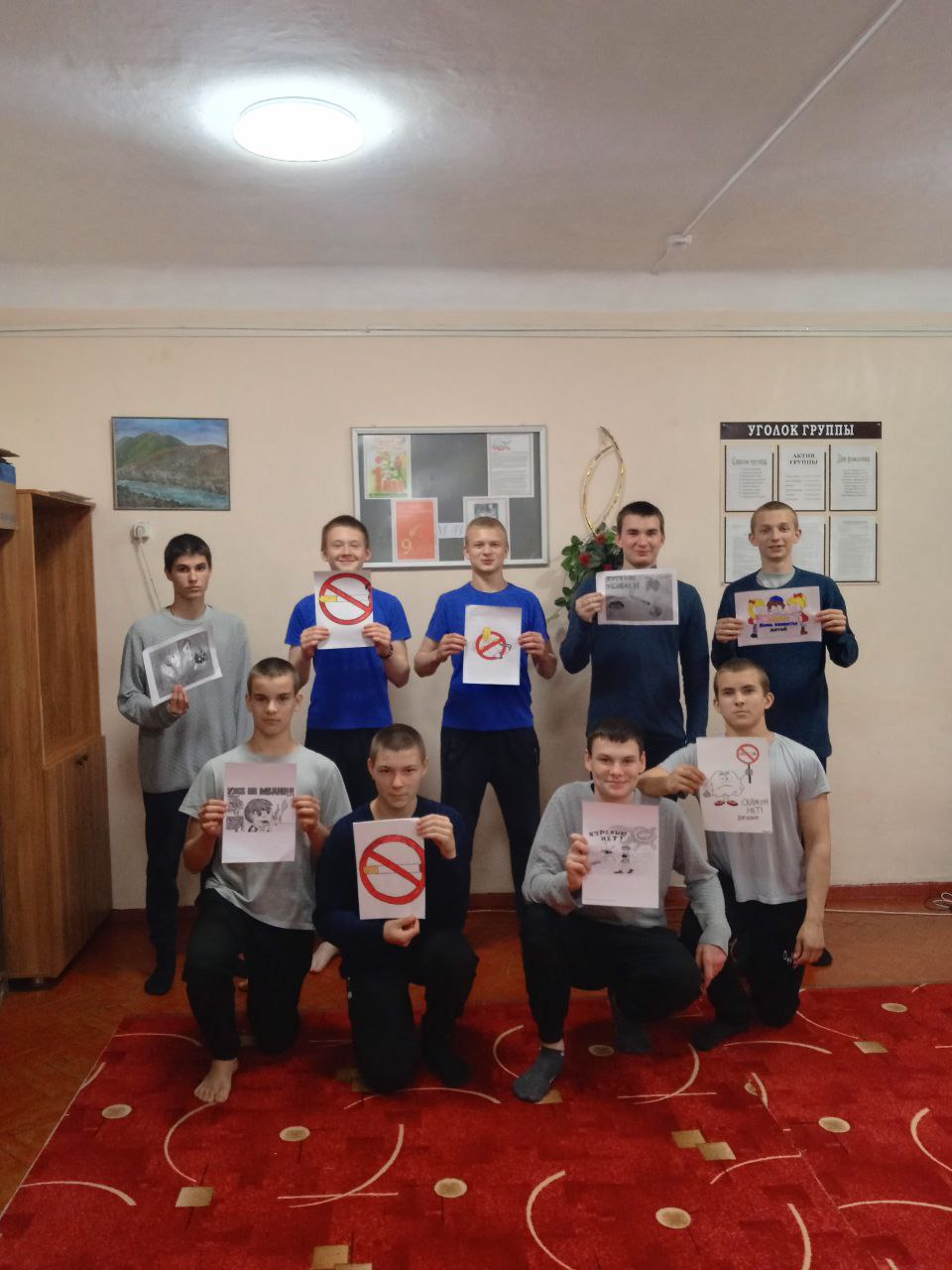Воспитанники 1 группы Максимов Игорь и Романов Алексей провели профилактическую беседу о вреде курения, о фактах и мифах, связанных с этой пагубной привычкой. Убеждали подростков в том, как необходимо и важно заботиться о своём здоровье и беречь его. А тех, кто не курит, никогда не брать в руки сигарету. Ведь наше здоровье в наших руках! Также были нарисованы рисунки на тему "Мы против курения". Хочется надеяться, что данная акция будет полезной и выбор, который сделают ребята, будет в пользу здорового образа жизни!
